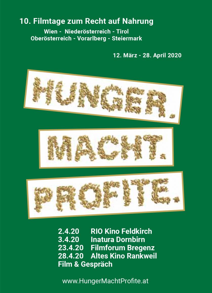 Zum 10. Mal wurden in ganz Österreich Filme über die globale Landwirtschaft und Ernährung vorgeführt. Die Filme zeigen die Ursachen von Hunger, die Verdrängung der kleinbäuerlichen Landwirtschaft und den fortschreitenden Raubbau an natürlichen Ressourcen auf. Gleichzeitig lenken sie den Blick auf jene Menschen, die sich gegen Agro-Business wehren und das Menschenrecht auf Nahrung einfordern.