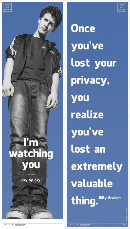 Auf einem 3 Meter großen Plakaten wird eine Person dargestellt, die kritisch auf den Betrachter hinabsieht. Unter dem Slogan „I’m watching you“ soll verdeutlicht werden, dass durch den Graph Search jeder Facebook User „durchsichtig“ wird, also jegliche öffentliche Daten von jedem auf einfachste Weise eingesehen werden kann. Die bedrohliche Pose der Person auf dem Plakat soll das bedrückende Gefühl vom Verlust der Privatsphäre verstärken und die Betrachter so dazu anregen, ihre Daten zu schützen. Auf einem weiteren Plakat befindet sich ein Zitat von Billy Graham, welches die Betrachter auf den Schutz der Privatsphäre aufmerksam machen soll.