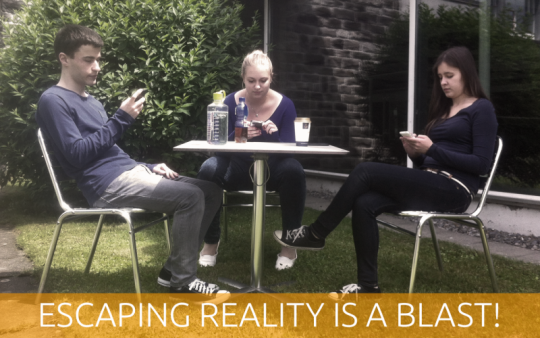 Leider sieht man immer häufiger, dass Leute zusammen an einem Tisch sitzen und jeweils an ihren Smartphones tippen. Chatten sie bei facebook? Checken sie ihre E-Mails? Schauen sie nach dem Wetter? Egal. Die reale Kommunikation bleibt auf der Strecke. Die Menschen unterhalten sich nicht mehr und verstecken sich teilweise hinter ihrem Mini-Computer.