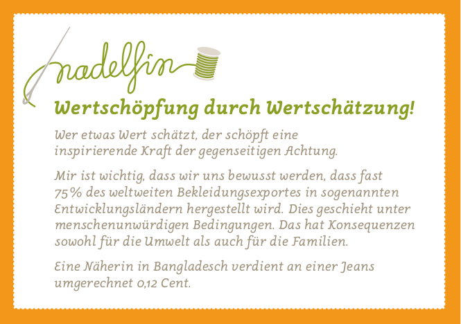 Den deutlichen Folgen unseres hohen Textilkonsums, die dadurch verursachten Umweltverschmutzungen und den schlechten Arbeitsbedingung in benachteiligten Ländern möchte Sarah mit ihrer Zeit und ihrem Können entgegenwirken.