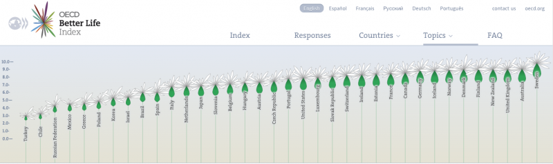 In part, the data is collected differently or is based on Gallup surveys, which complicates comparability. The Better Life Index is still experimental and it will probably take some more years, before it will be able to counterbalance or outdo the current measure of all political decisions, the GDP.